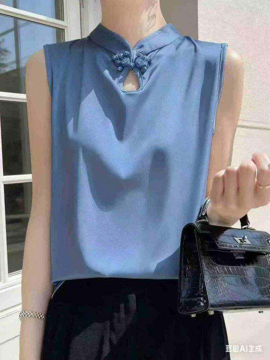 全清4.9新中式立领盘扣无袖吊带背心女内防真丝吊带上...