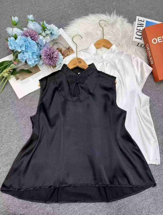 新中式立领盘扣无袖吊带背心女内防真丝吊带上衣,数量:354件 码数:1-4码,大货黑色为主 独立包装(货号331#66)