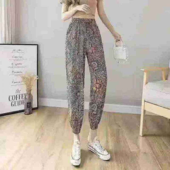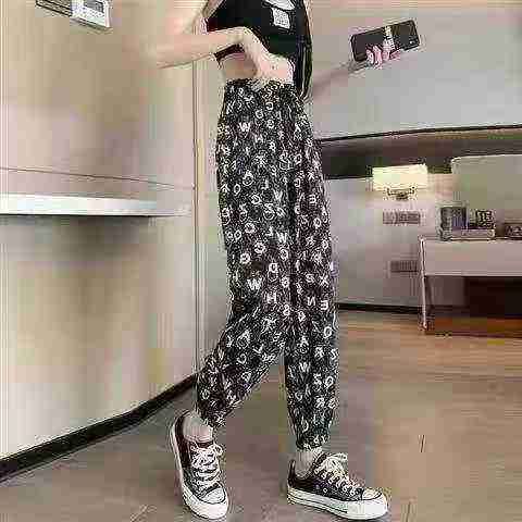 1045条夏季新款冰丝裤女垂感宽松九分束脚休闲防蚊裤,...