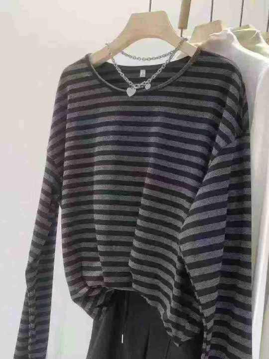 787件男女同款慵懒风春秋冬季打底衫美式条纹长袖t,有...