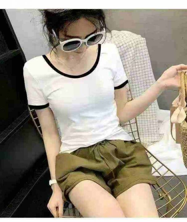 黑白色拼接圆领短袖 85件,全清5.8元,码数:(S到XXL)图片色,十件一个包装,网红拼接撞色短袖T恤女2026夏季新款性感修身圆领百搭上衣