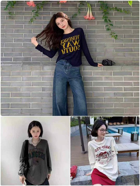 电商仓回收2500件日系印花宽松潮流慵懒打底长袖T恤系列,码数S-2XL。独立包装,分货➕0.5