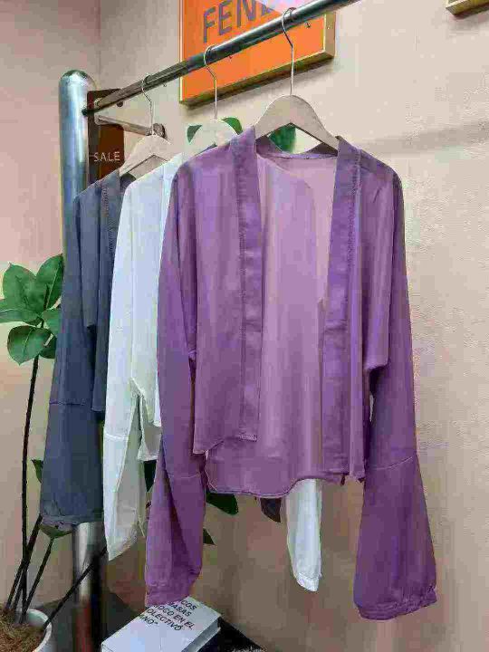 复古雪纺开衫空调衫防晒衫,百搭神器,灯笼加长袖设计师款,单款3色,数量120件左右,码数1-2(S-m)独立包装。