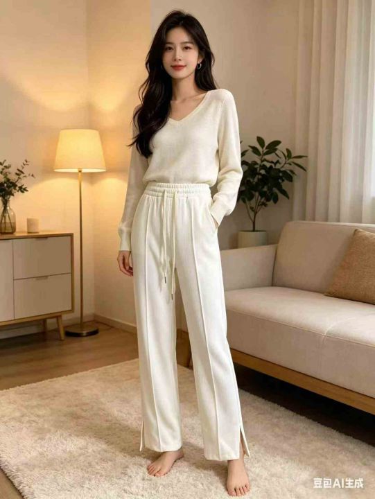 开叉阔腿裤女裤子春秋款2026新款窄版直筒休闲小个子运...