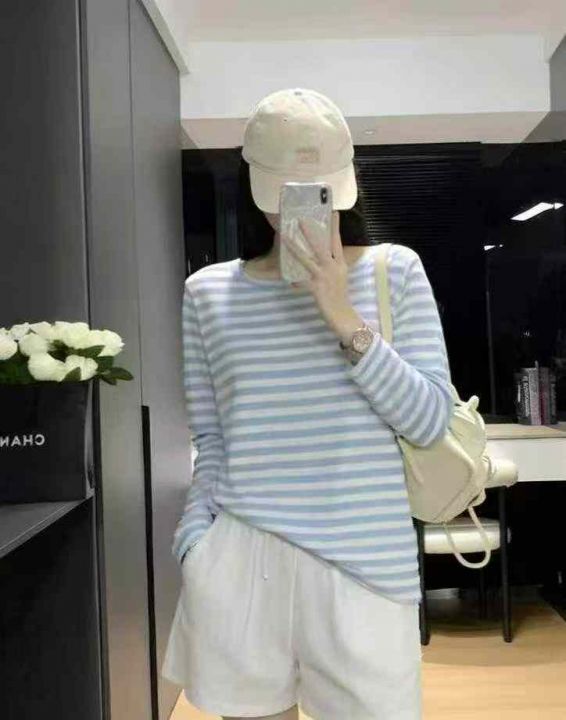 春季新款网红复古撞色条纹针织长袖衫,独立包装,均码面料柔软舒适弹力大,...