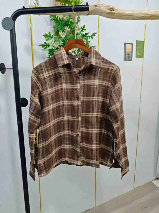 美式衬衫防晒复古春秋新款宽松格子长袖秋季外套衬衣上衣高级款