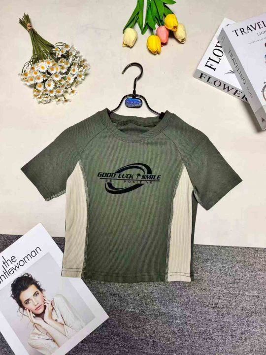 时尚洋气修身显瘦短款辣妹印花短袖T恤,图片款,品质好,工厂原单,5件一包