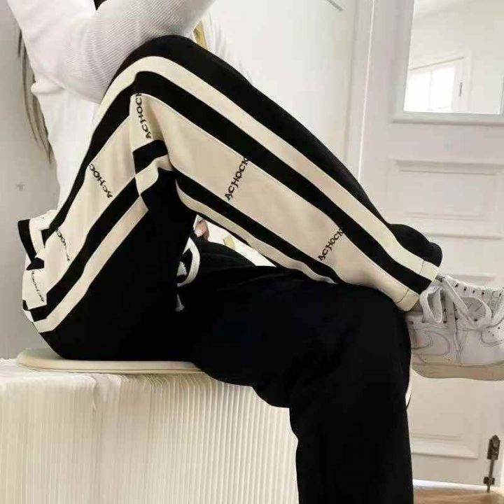 美式高街直筒裤宽松运动裤高腰卫裤垂坠感休闲长裤数...