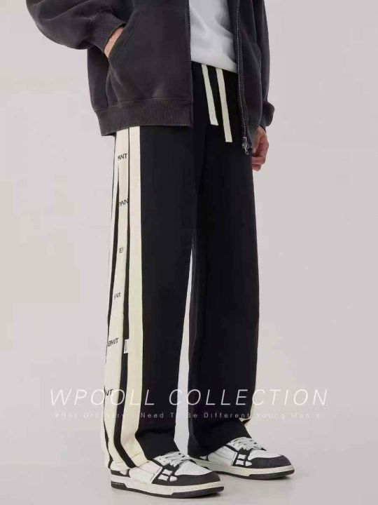 美式高街直筒裤宽松运动裤高腰卫裤垂坠感休闲长裤