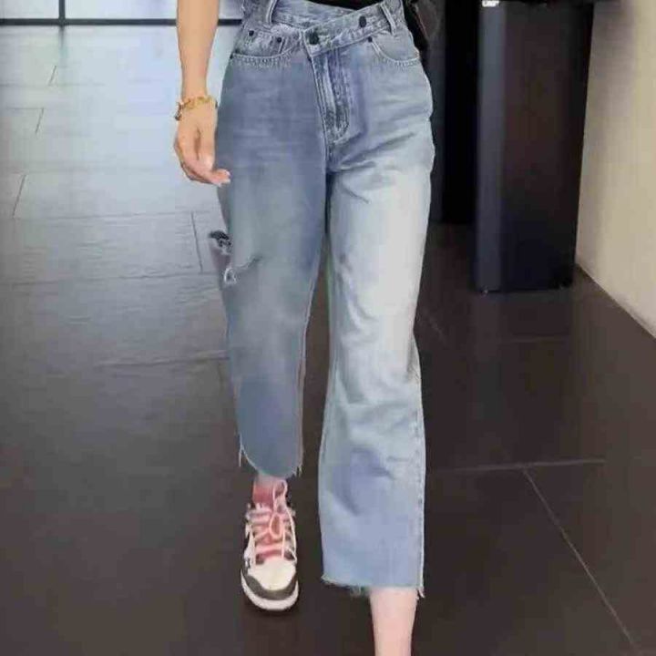 破洞显瘦毛边九分牛仔裤 169件,全清11.8元,码数:S到XXL,正品独立包装,每条带有原吊牌,夏季薄款破洞老爹牛仔裤女复古高腰显瘦直筒九分哈伦裤