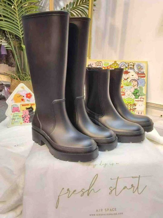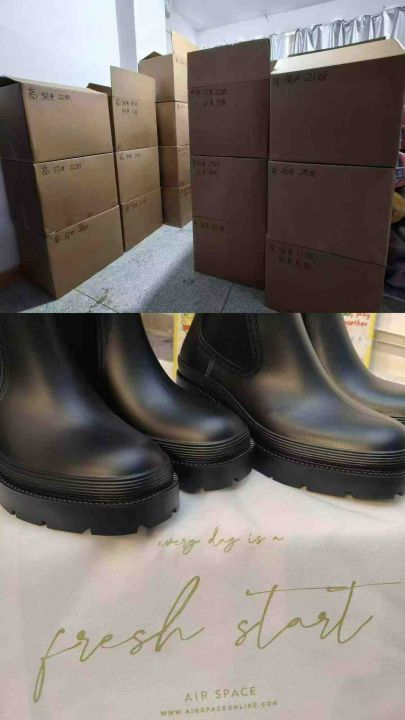 420双 来自中国台湾人气潮流品牌AIR SPACE 厚底中筒高筒晴雨两用防水靴,防滑耐磨、易打理、风格百搭。高筒272双、中筒148双,码数:36-37-38-40-41,无纺布防尘袋箱装,原价几百块一双。