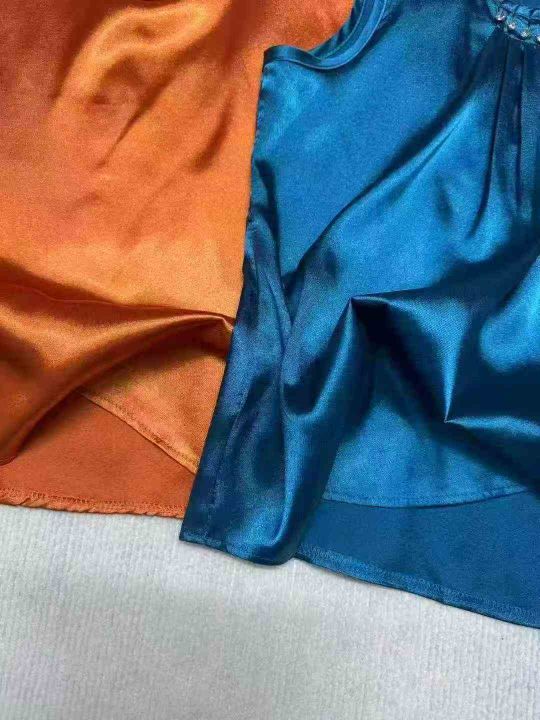 经典仿真丝绣花蕾丝拼接无袖背心.图片款式都单色1-4...