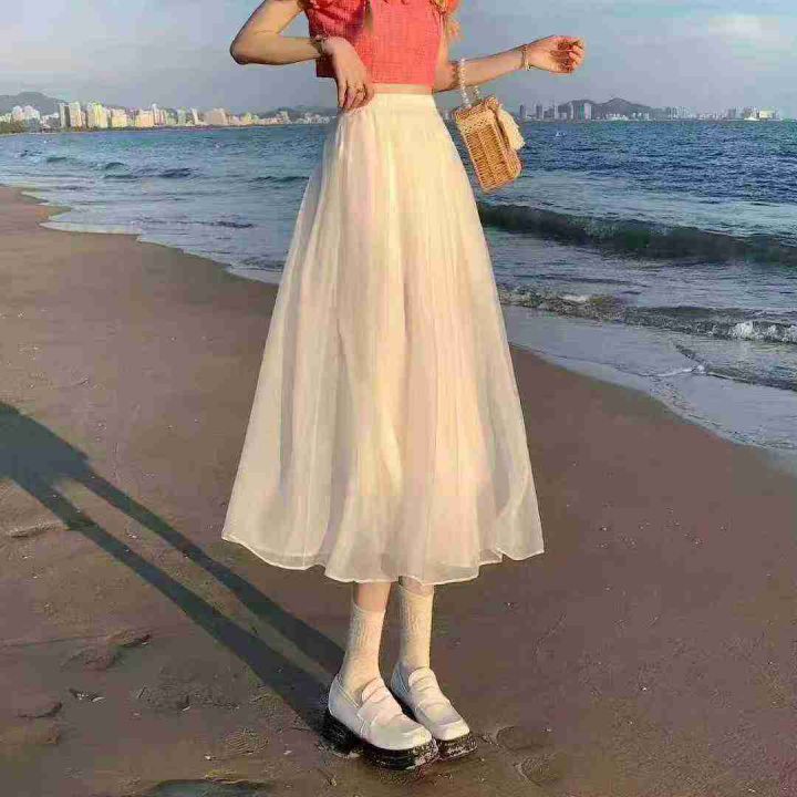 天猫在售款130件左右高品质夏季小个子白色网纱温柔风半身仙女A字裙,码数L-XL,有内衬,独立包装带吊牌