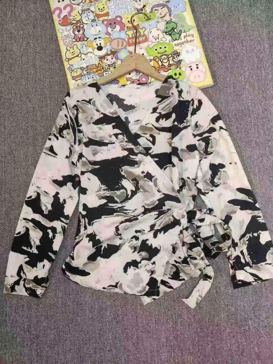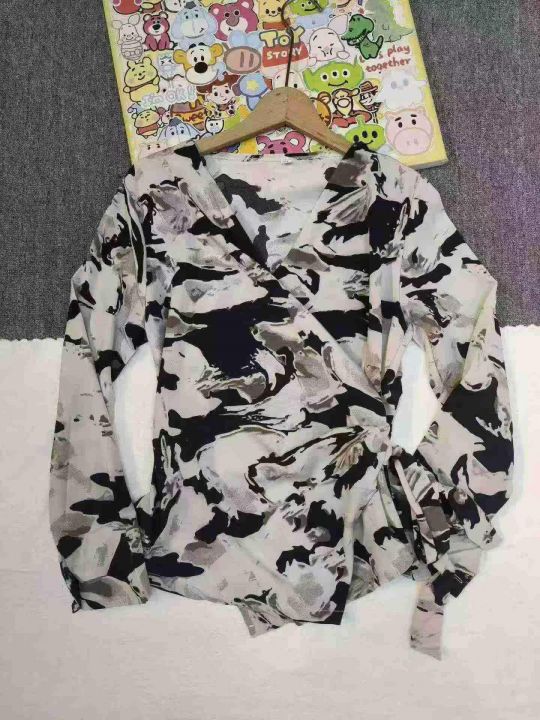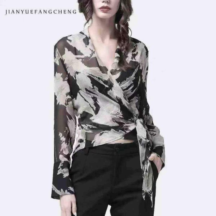 全清6.8131件雪纺衫女长袖衬衫春夏交叉V领一片式上衣...