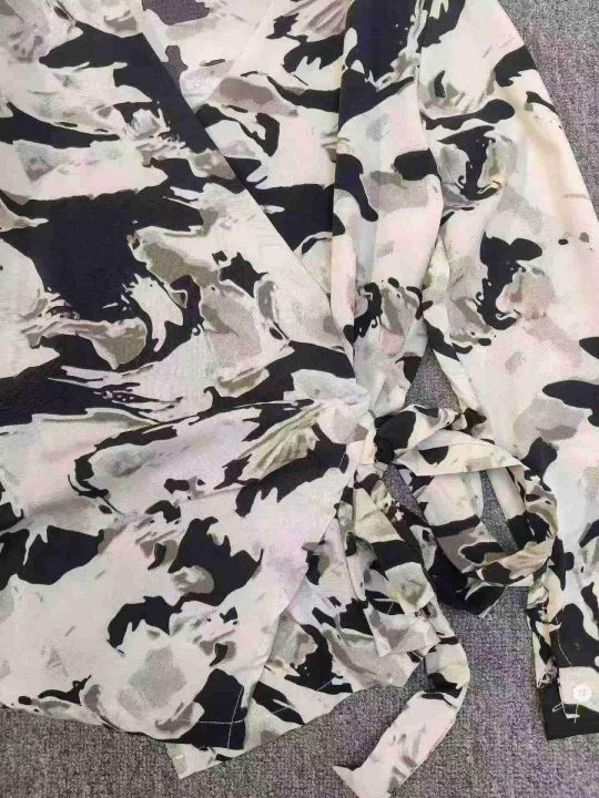 131件雪纺衫女长袖衬衫春夏交叉V领一片式上衣收腰遮肚子洋气欧货小衫,码数LXL码 独立包装。