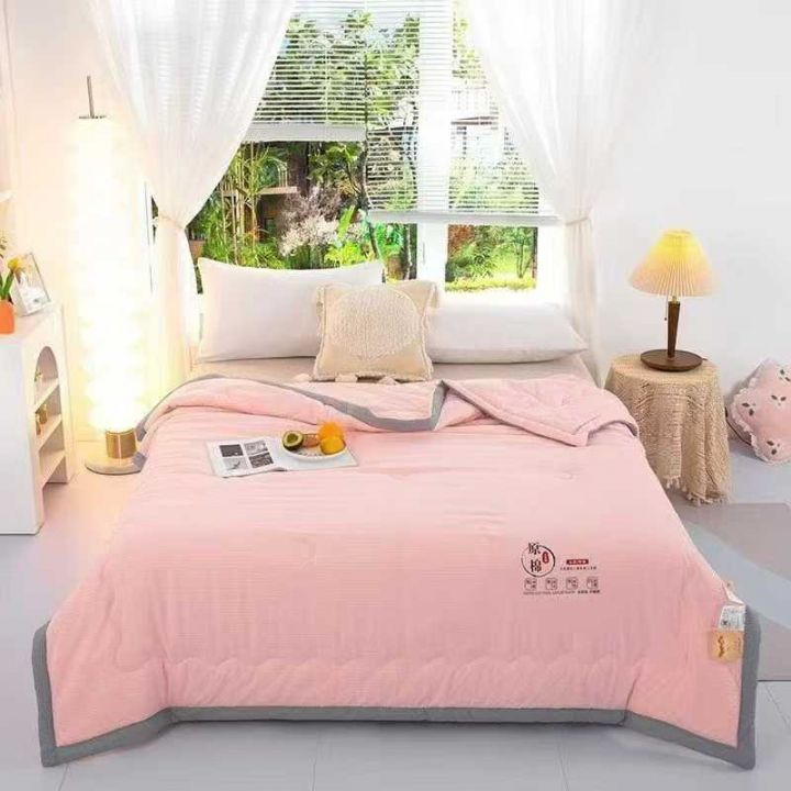 水洗棉手包边夏被1.5米✖️2米4个色,粉色,米白,灰色,绿色价格21元全清...