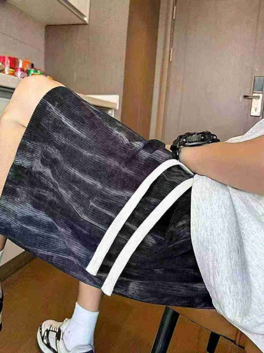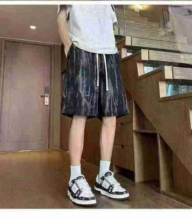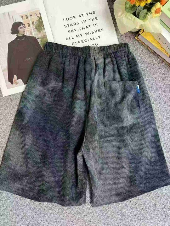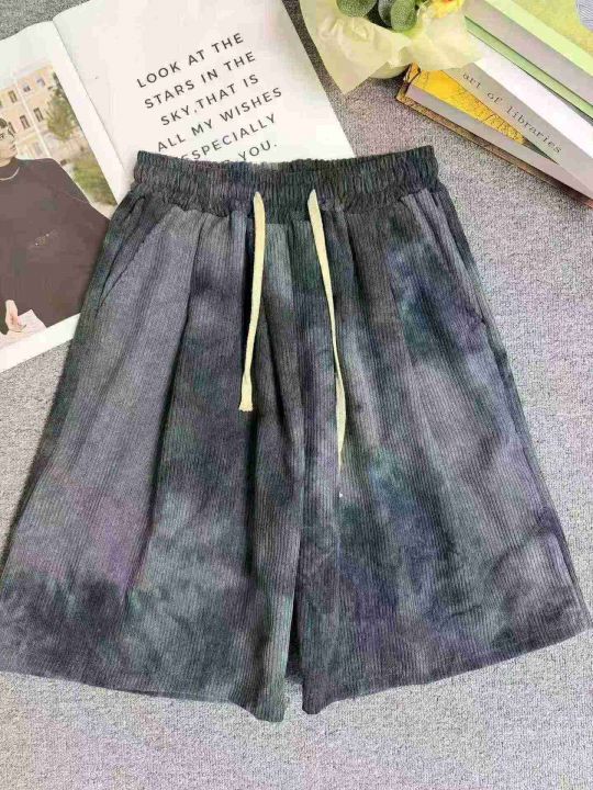 全清6.5男士夏季美式扎染外穿宽松休闲松紧腰五分裤短...