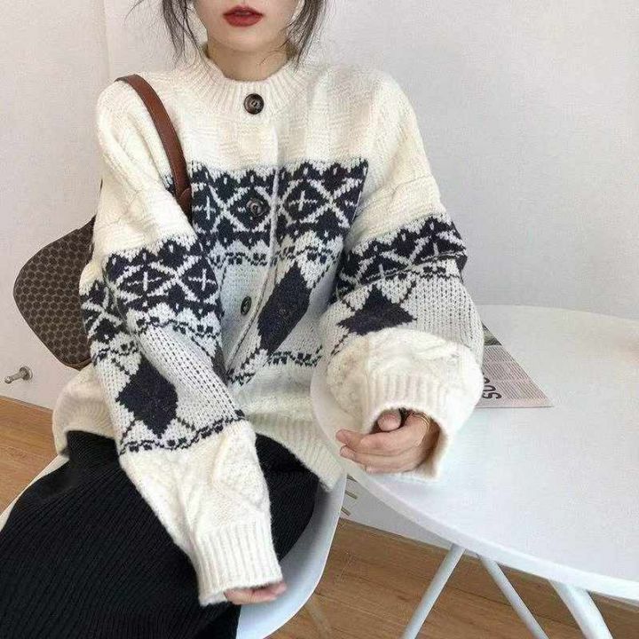 捡漏款,秋冬新款高品质英伦风菱格宽松慵懒风加厚提花毛衣开衫,独立包装,...