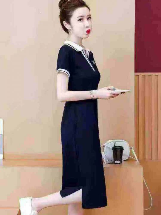 polo连衣裙女夏过膝长款直筒T恤裙休闲宽松遮肚子运动连衣裙,码数2-7码(s-4XL),437条,分货➕1,型号122#49