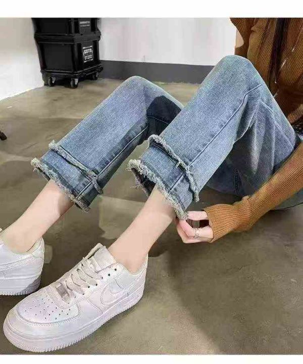 春季新款设计感毛边直筒高腰显高显瘦复古牛仔烟管裤,独立包装带吊牌,码数...