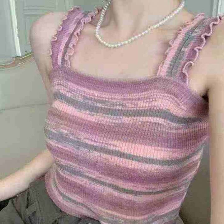 1478件针织吊带背心,条纹木耳边设计,一款7色,超弹力,穿着舒服,修身显...