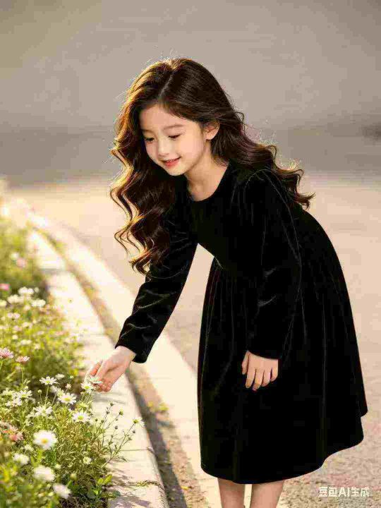 全清价6.81900件,女童连衣裙赫本黑色高档丝绒裙儿童...