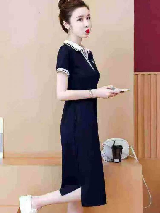 polo连衣裙女夏过膝长款直筒T恤裙休闲宽松遮肚子运动连衣裙,码数2-7码(s-4XL),437条,分货➕1,型号122#49
