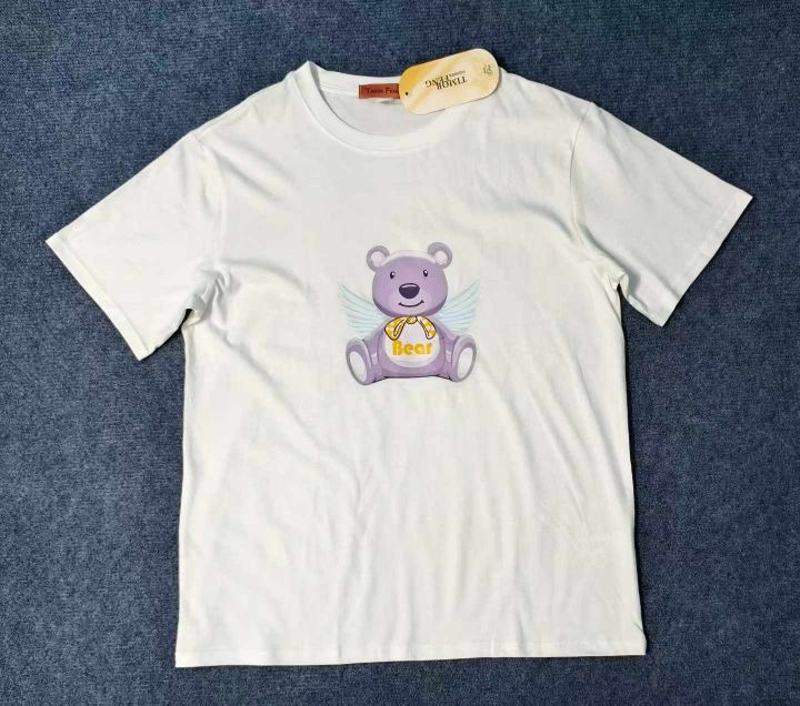 ☆纯棉女款印花短袖圆领T恤,工厂原单原包装,三标齐全,后领包边,做工精细,3000件,S-2XL,常规版型,白色多,米白很少,独立包装吊牌价168元,全清7.8元,分货+0.5