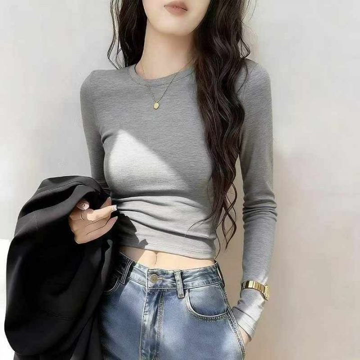 春秋新款外穿打底净版简约弹力修身显瘦弹力拉架棉长袖...