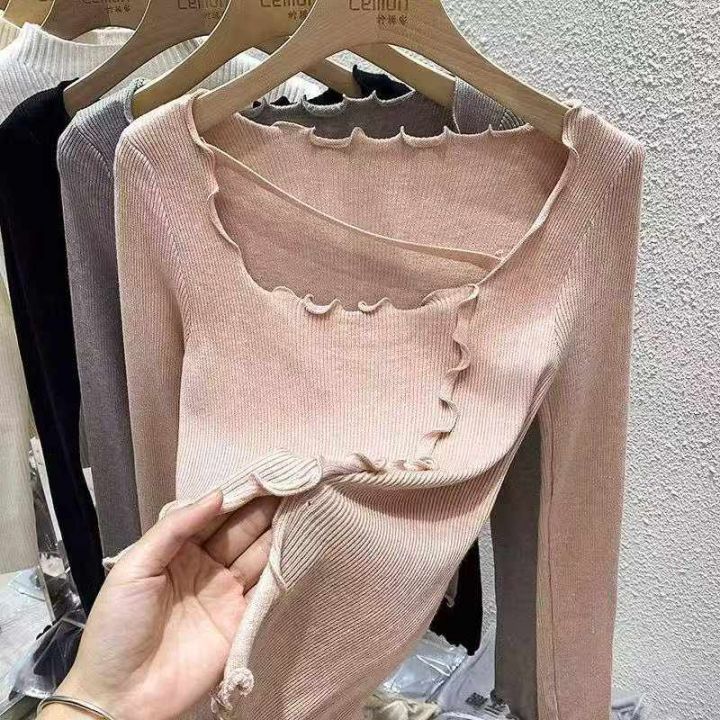 秋冬新款网红爆款方领木耳边开叉针织套头毛衣,独立包...