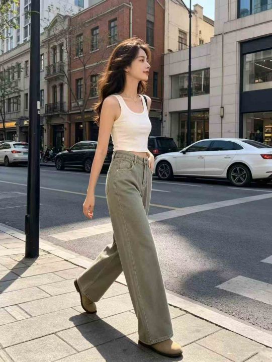 杏色高腰直筒宽松阔腿牛仔裤 183件,全清12.8元,码数:S到XL,正品独立包...