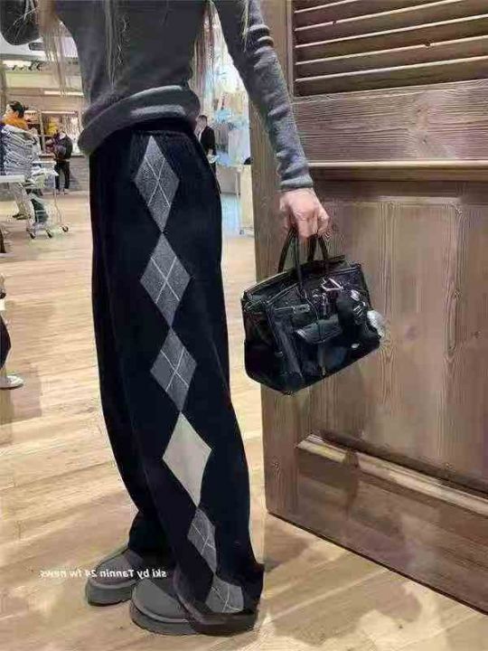 ☕️男女同款运动休闲裤复古几何印花宽松慵懒超火的高...