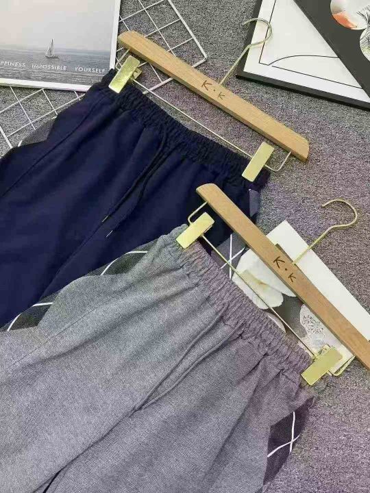 ☕️男女同款运动休闲裤复古几何印花宽松慵懒超火的高...