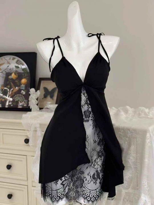 性感睡衣女带胸垫聚拢冰丝吊带睡裙透明蕾丝纯欲风开衩新款禁欲系,独立包装,码数S-XL,数量470件