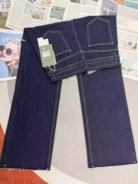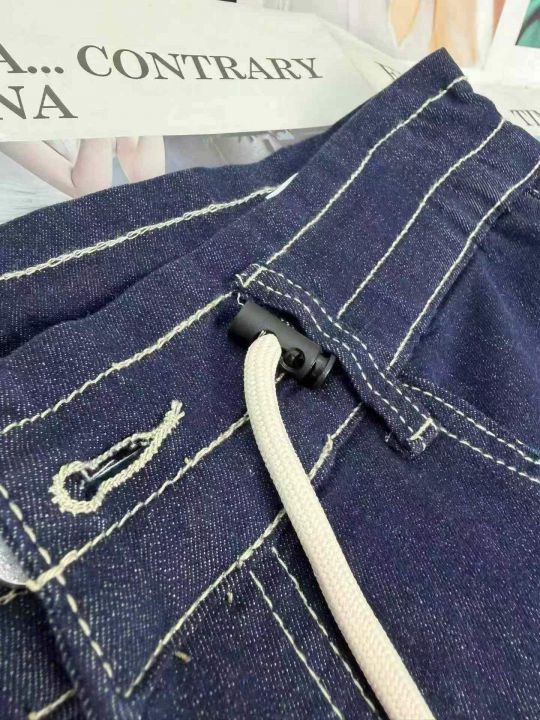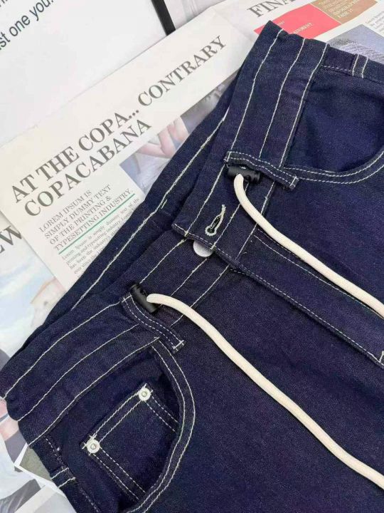 高腰绑带宽松破洞女士弹力牛仔裤,单款单色,独立包装...