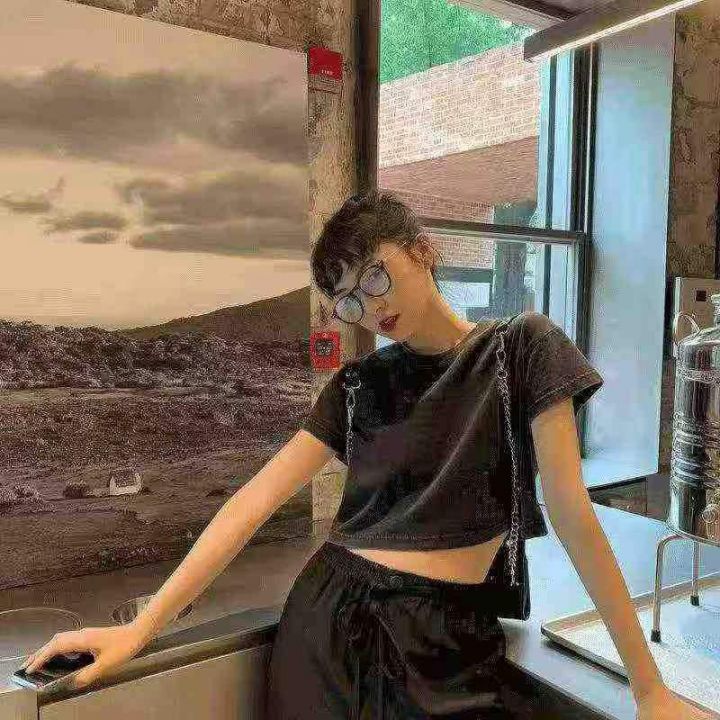 上新全清:3.99一件复古设计感做旧辣妹短款上衣T恤,[...