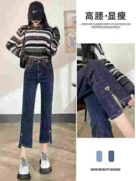 高腰弹力百搭显瘦开叉小个子烟管牛仔裤,整款2色,独...