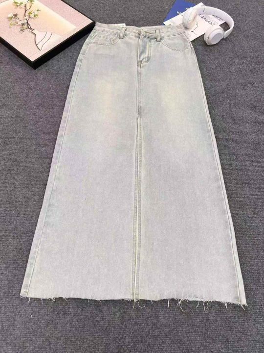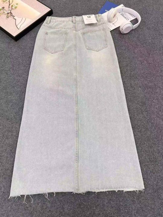 复古高腰水洗牛仔长裙 192件,全清10.8元,码数:S到XL,正品独立包装,复古显瘦高腰A字半身裙女春季新款设计感毛边牛仔裙宽松减龄长裙