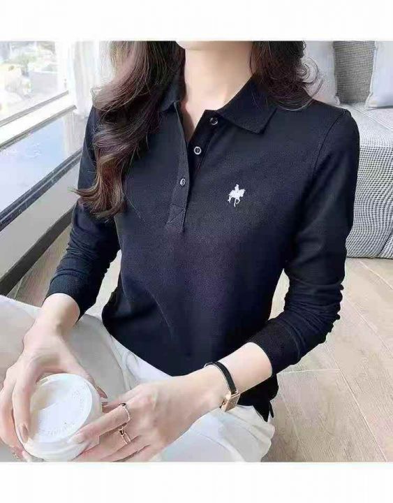 ☕️高品质品牌好货纯棉女装翻领POLO刺绣长袖T恤3110...