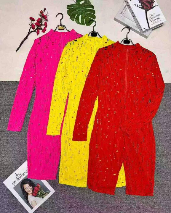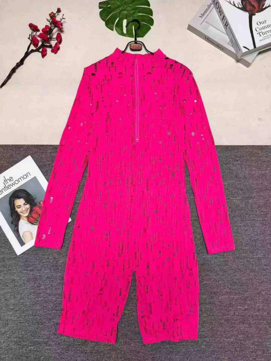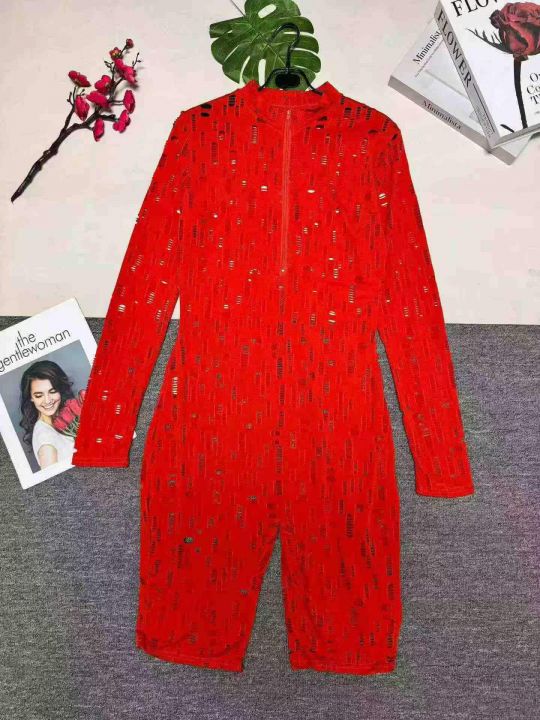 欧美女装纯色烧花破洞拉链性感连体裤,整款三色,数量:342件,码数:S-2XL,品质好,拉链式独立包装。