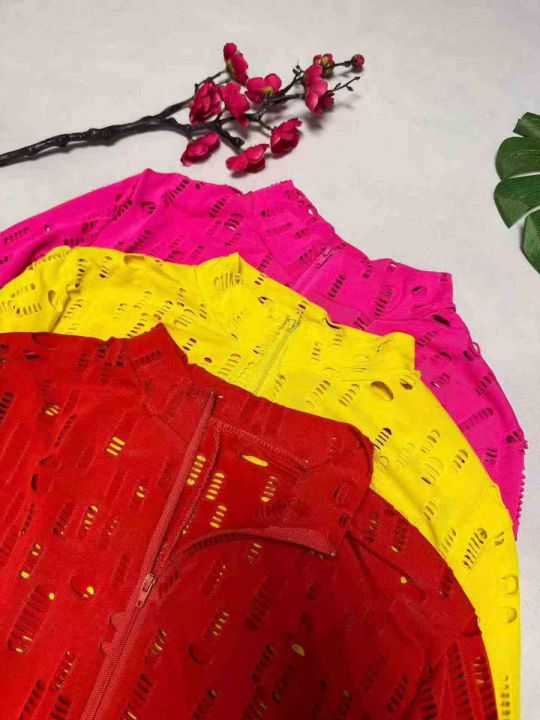 6.8清款号:779# ,清:欧美女装纯色烧花破洞拉链性感...