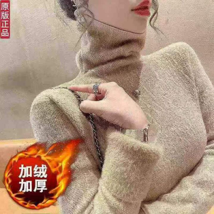 冬季新款品牌原单高级感设计款高领加绒一体绒包芯纱套头毛衣,独立包装带吊...