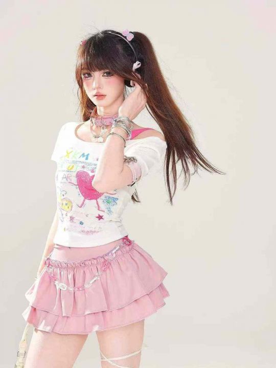 [月亮]:7.5清262件[月亮]:夏季新款涂鸦印花露肩设计纯棉辣妹上衣[月亮]:...