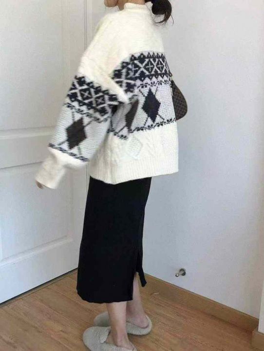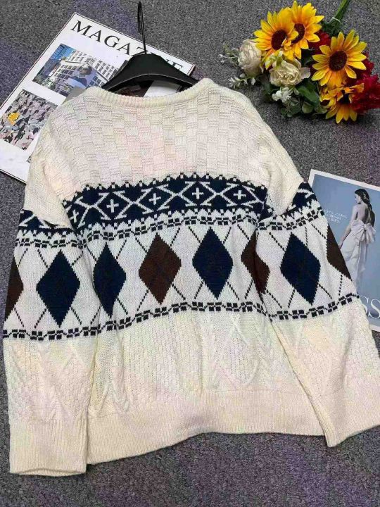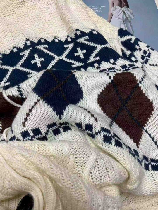 捡漏款,秋冬新款高品质英伦风菱格宽松慵懒风加厚提花...