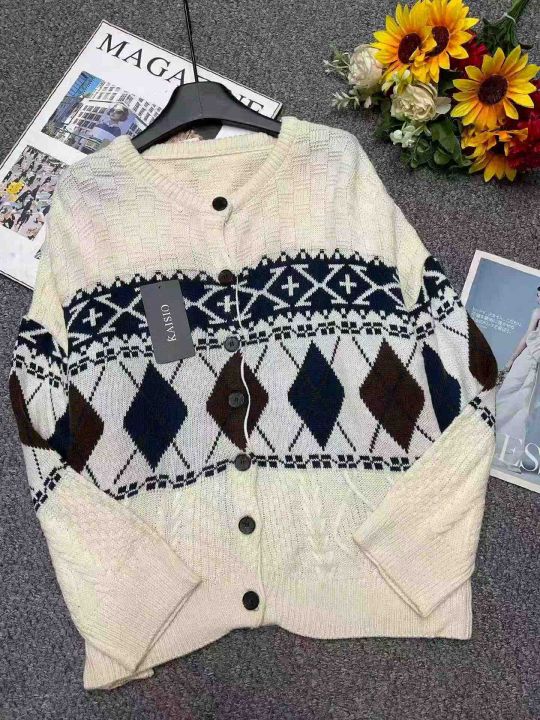 捡漏款,秋冬新款高品质英伦风菱格宽松慵懒风加厚提花毛衣开衫,独立包装,均码面料软糯舒适有弹力,85件左右,全清8.9元超低价秒杀!