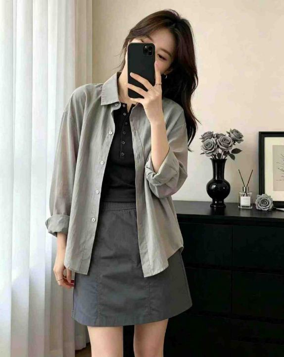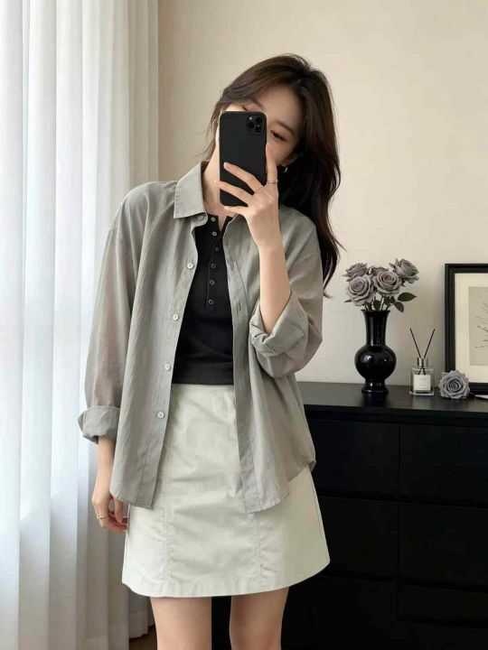美式衬衫防晒复古春秋新款宽松格子长袖秋季外套衬衣上衣高级款码数:1-4码...