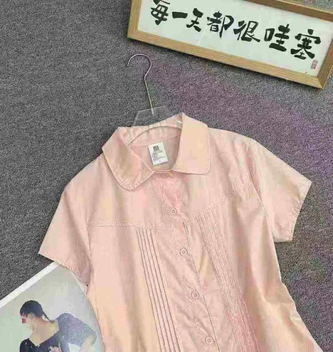 韩系甜美粉色短袖衬衫595件7.8,娃娃领,压褶设计,后...