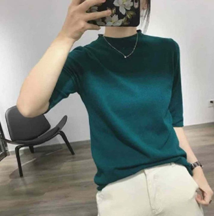 春夏季新款简约宽松百搭法式气质半高领包芯纱中袖针织衫,独立包装,均码面料软糯舒适弹力大,500件,全清4.9元超低价秒杀!分货加一!
