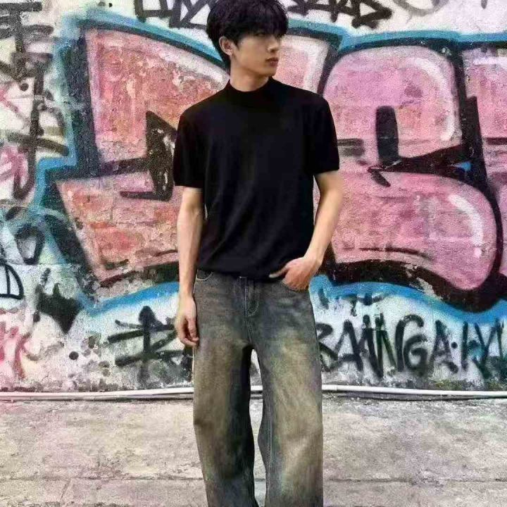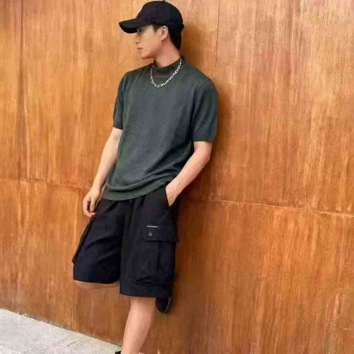 春夏季新款简约宽松百搭法式气质半高领包芯纱中袖针织衫,独立包装,均码面...