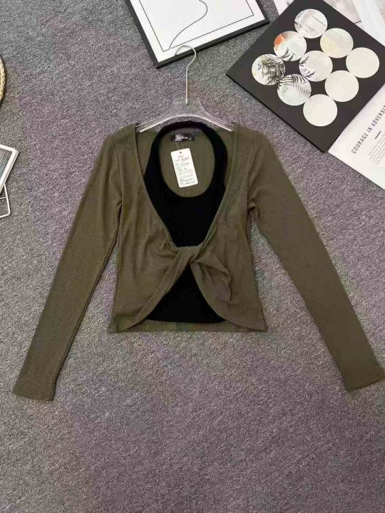 ☕️大整款辣妹长袖4600件全清6.8元 ,分货7.8元,S到XL,单款2色,高弹力,独立包装吊牌,设计感假两件挂脖上衣女早秋辣妹修身显瘦短款露肩撞色长袖T恤